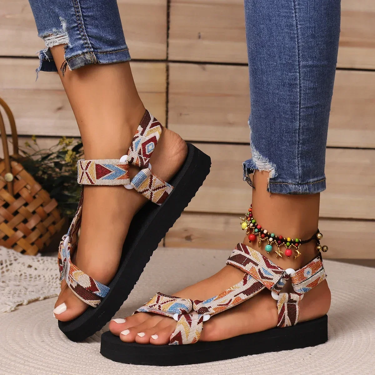 Women's Stylish Paisley Pattern Sandals - Adjustable Ankle Strap