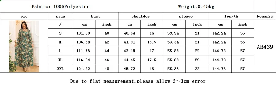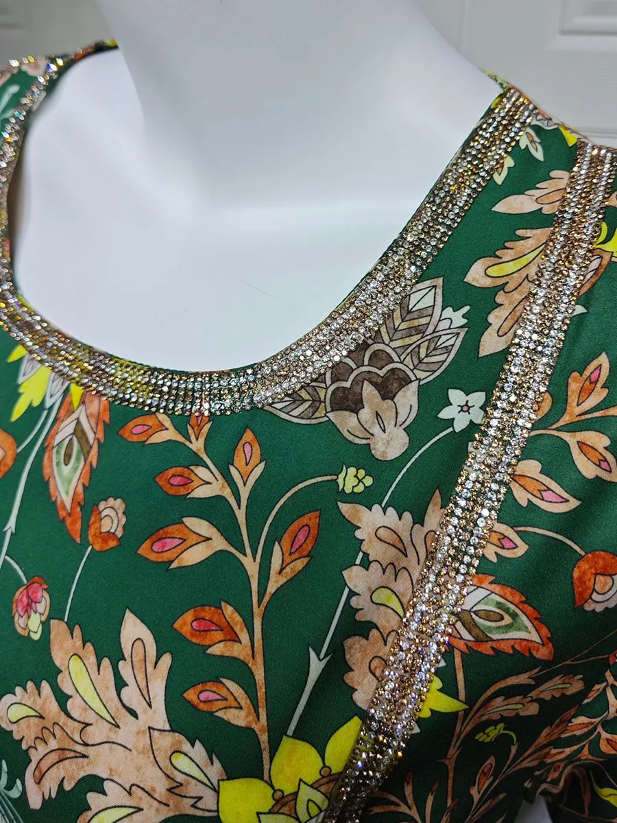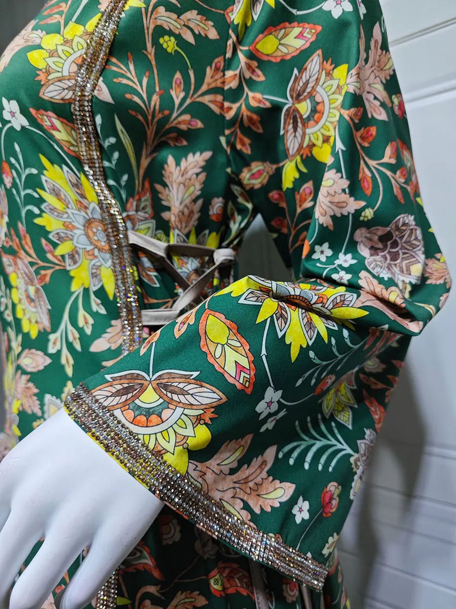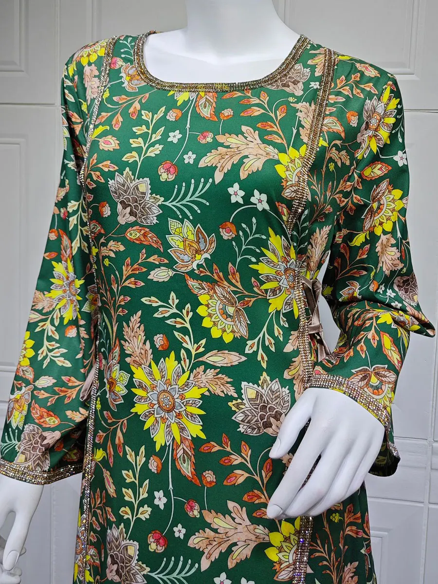 Stylish Floral Print Abaya Tunic Split Hem For Women's Evening