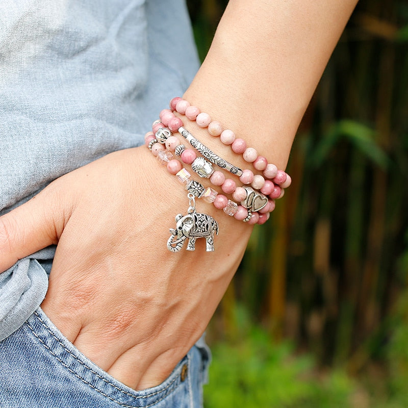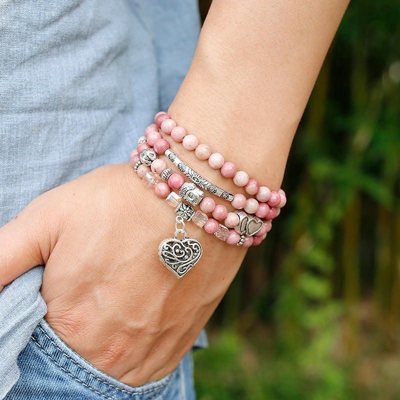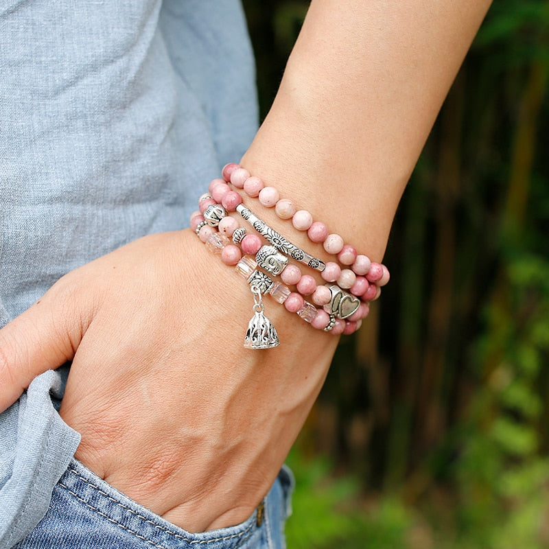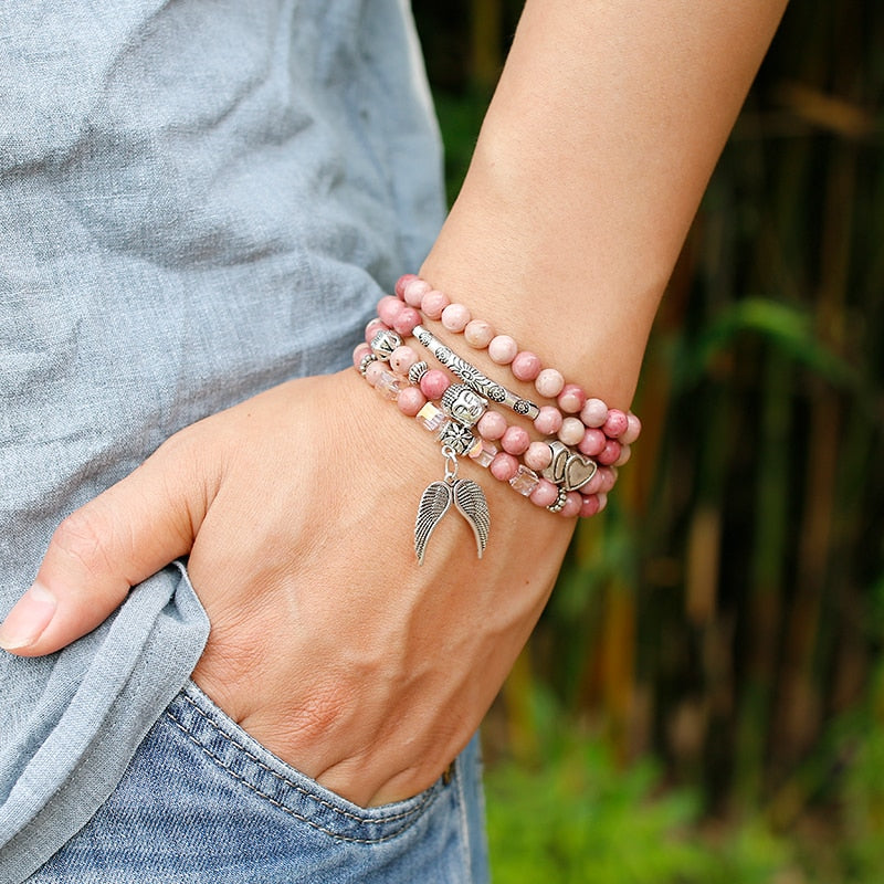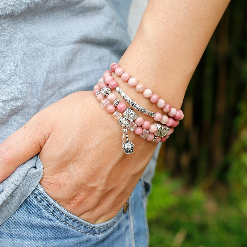 6mm Natural Rhodochrosite Beads Strand Bracelet Women Lotus