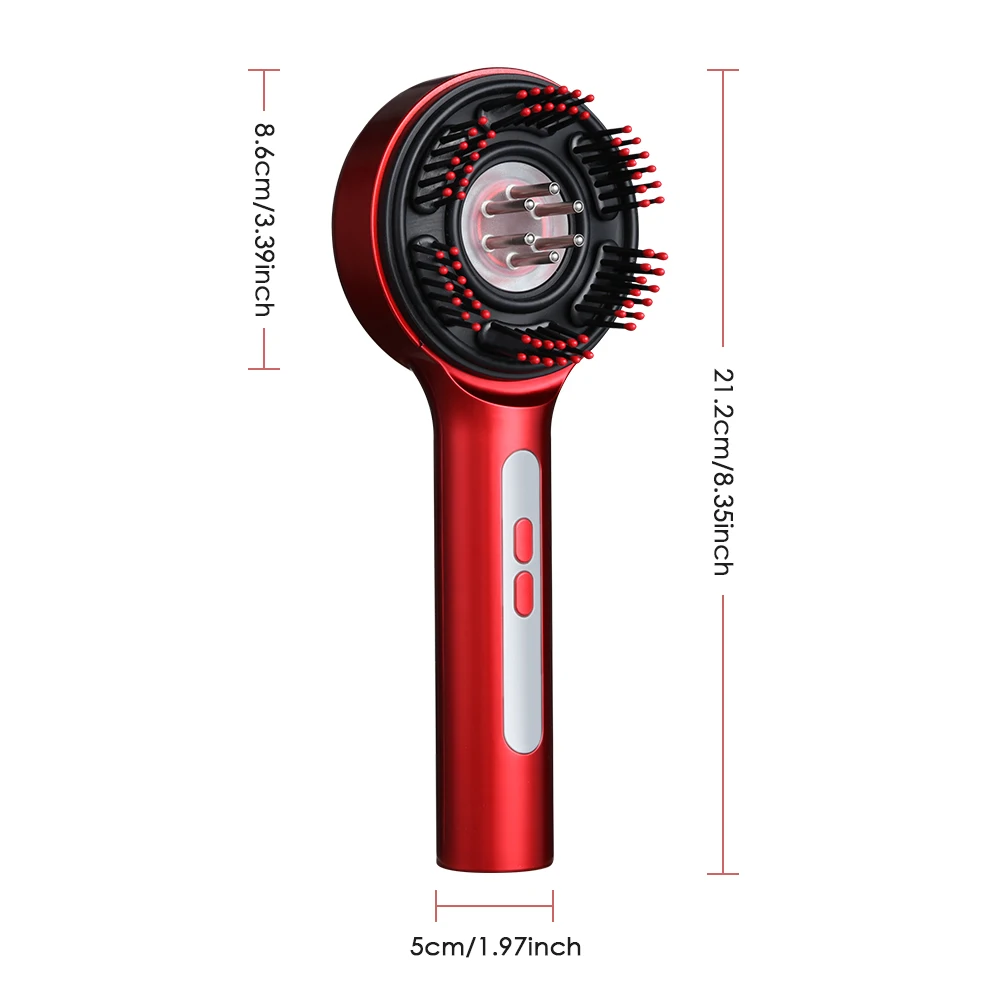 1. This electric scalp massage comb features three light therapies: red, blue, and purple lights target specific scalp needs. 8 LED beads deliver light precisely to soothe the scalp, revitalizing follicles and improving overall scalp health.