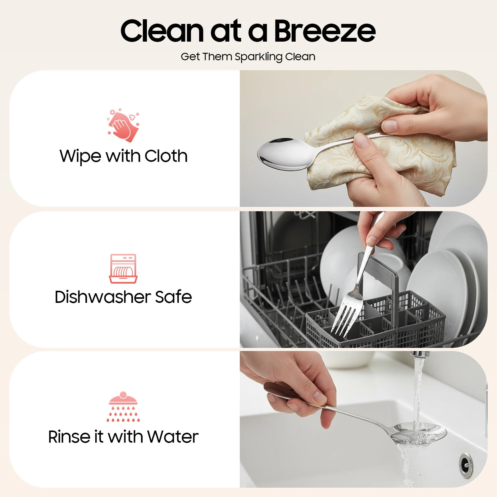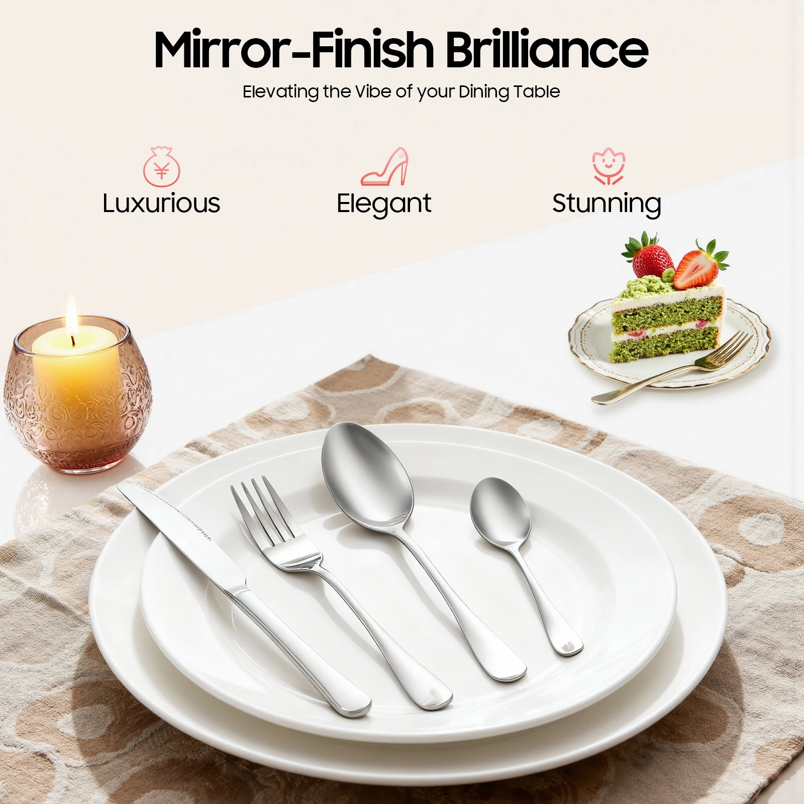 This 24-piece stainless steel cutlery set combines aesthetics and practicality, adding a touch of splendor to your dining table and enabling you to enjoy a prestigious life at every meal. The 24-piece set makes this product suitable for both family dinners and small gatherings of friends. It will satisfy your pursuit of dining rituals and let you enjoy every meal with health and happiness.