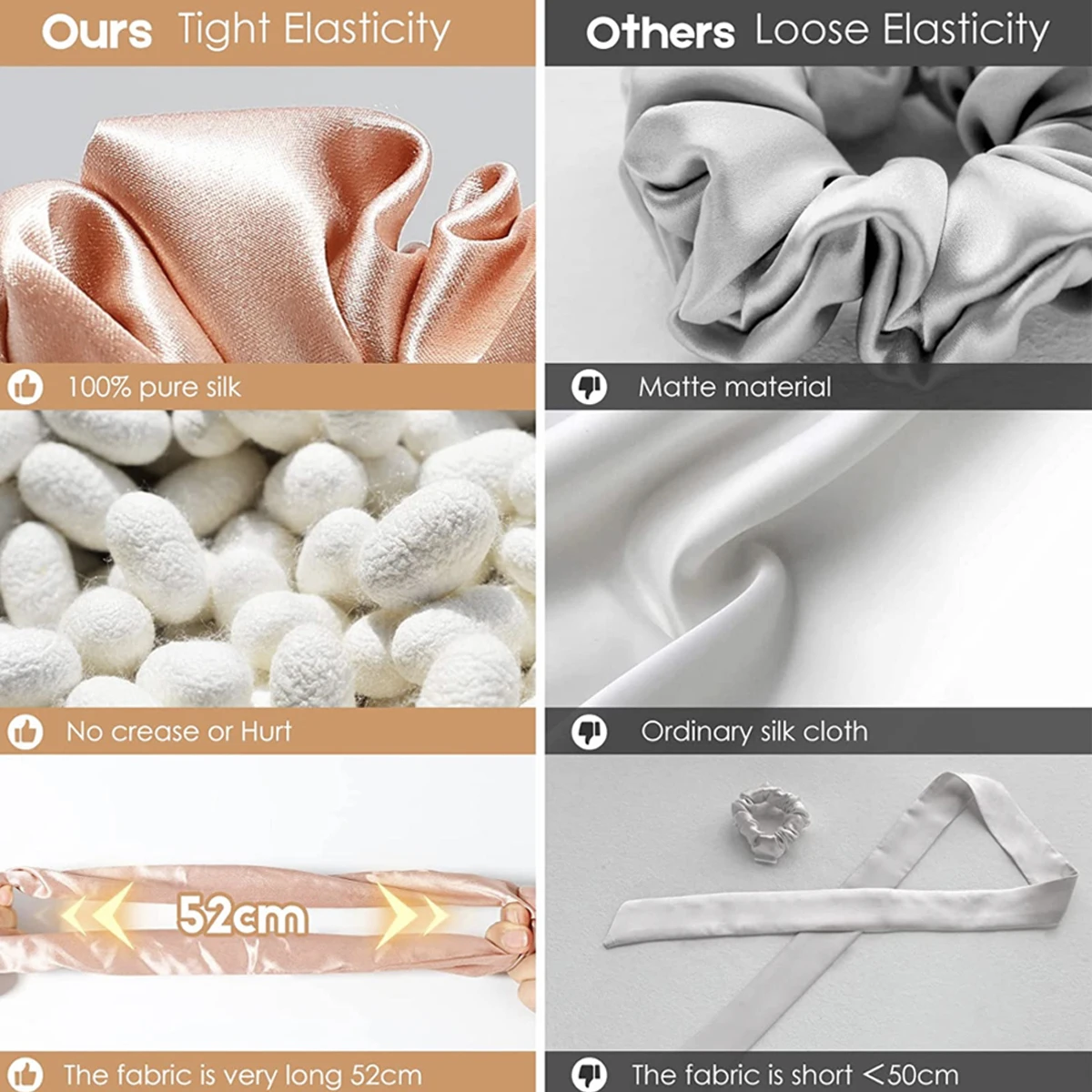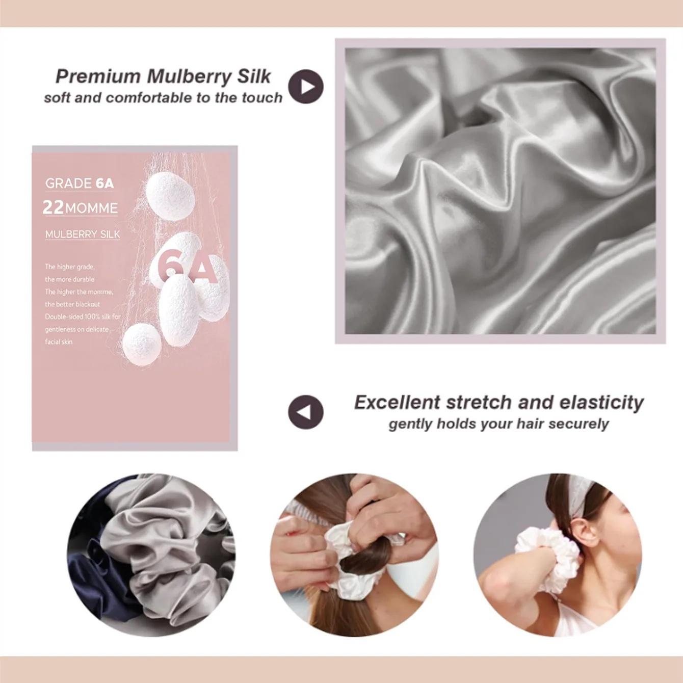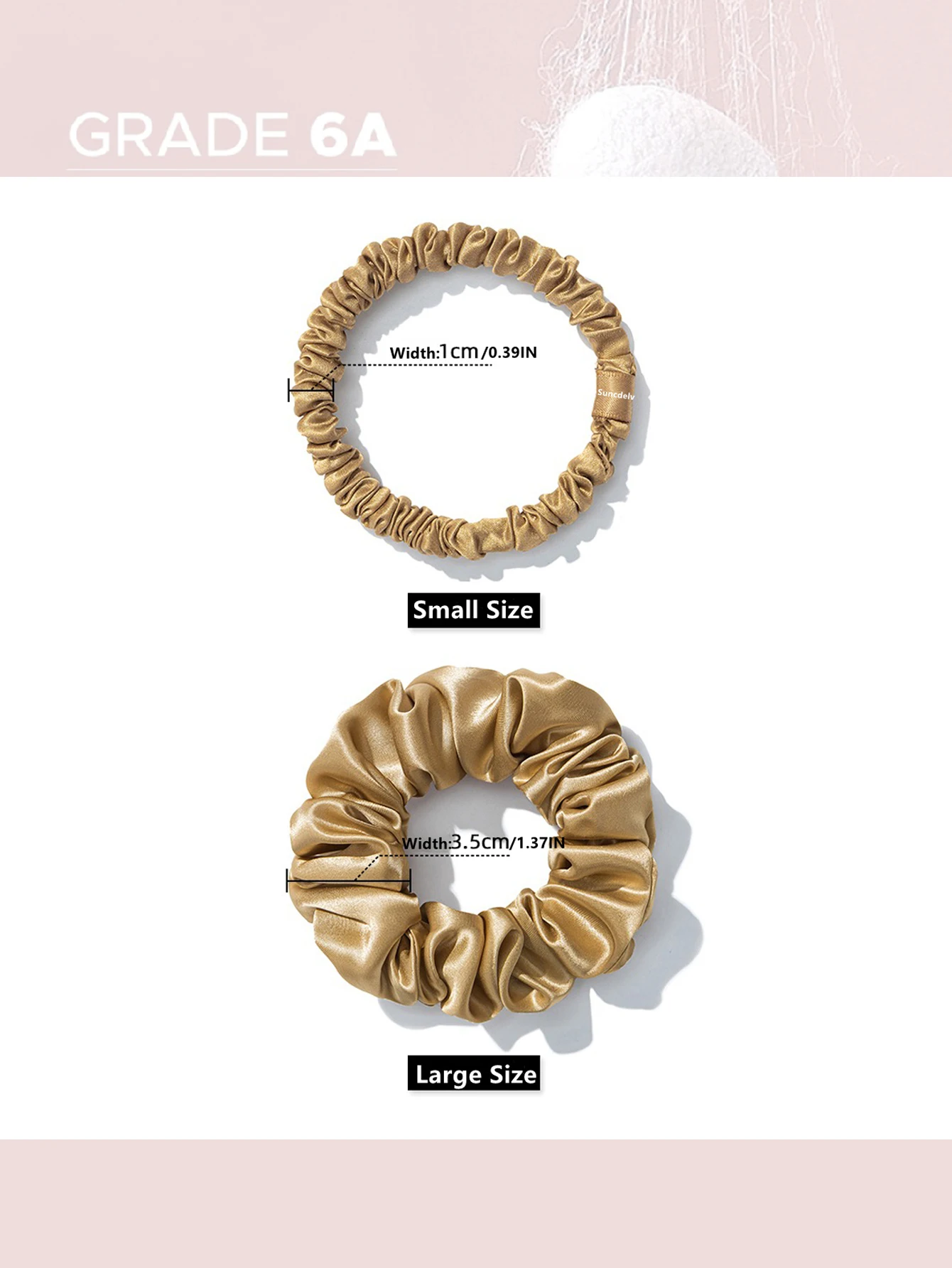 2PCS 100% Natural Silk Solid Color Hair Ties High Hair Scrunchies