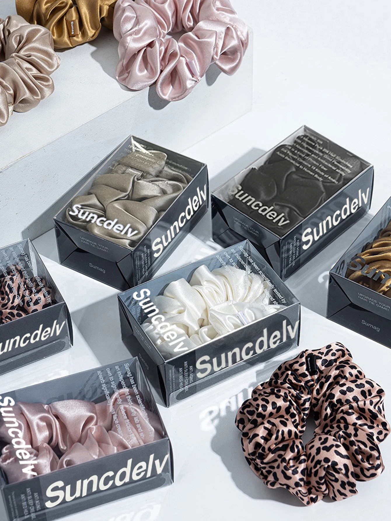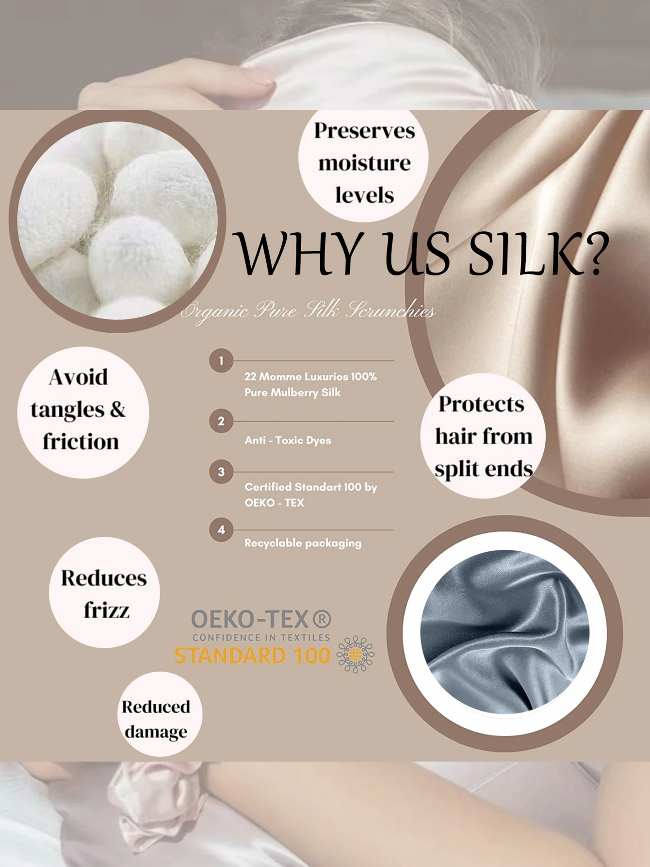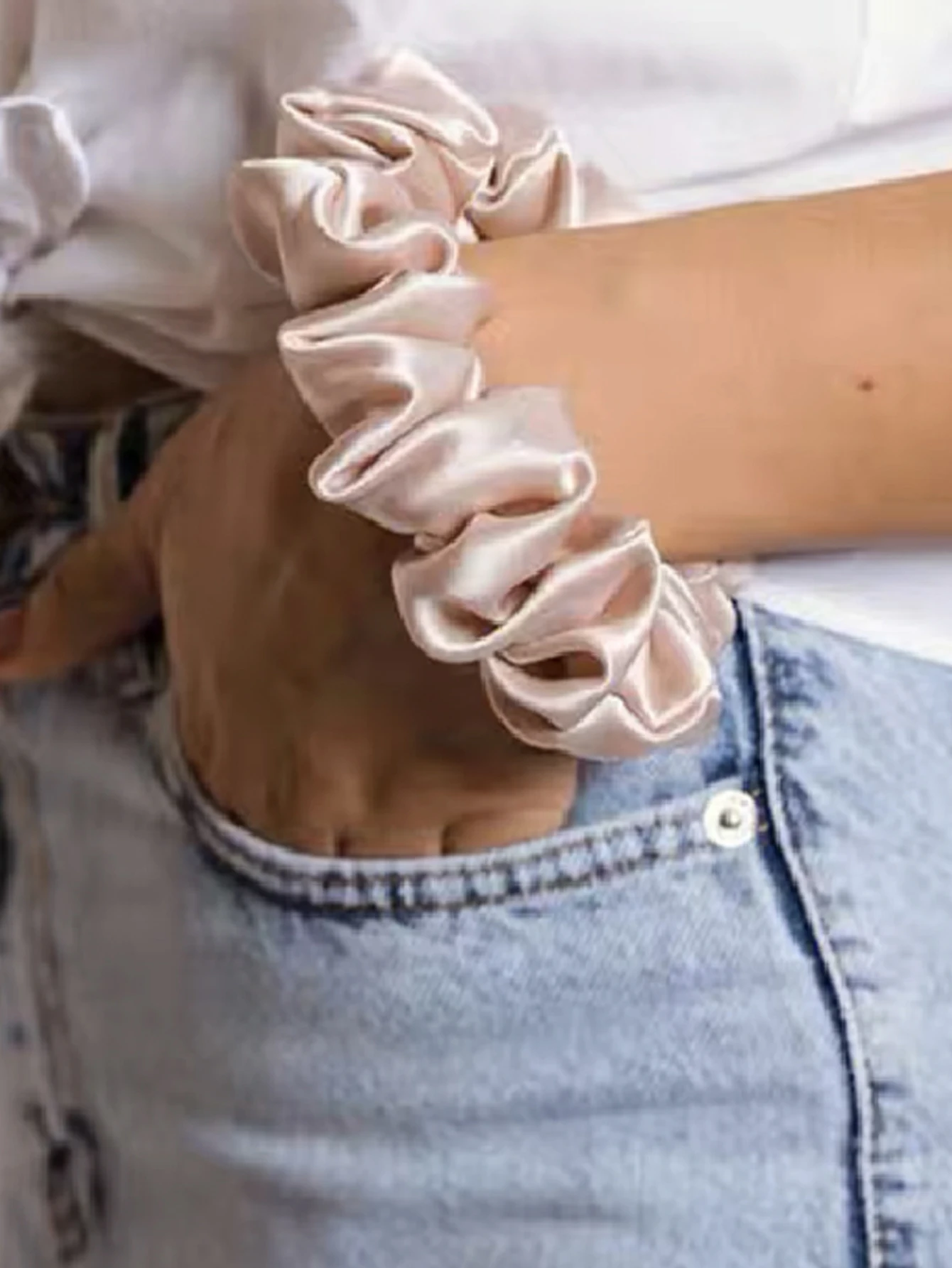 2PCS 100% Natural Silk Solid Color Hair Ties High Hair Scrunchies
