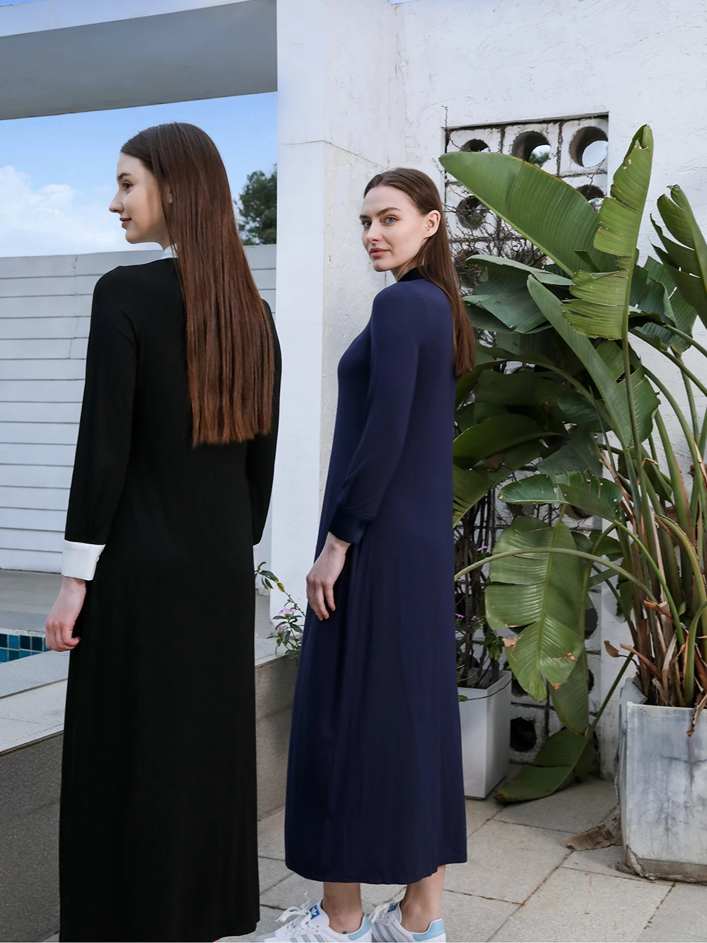 Women Patchwork Modal Dress Soft Batwing Sleeve Satin Cuff