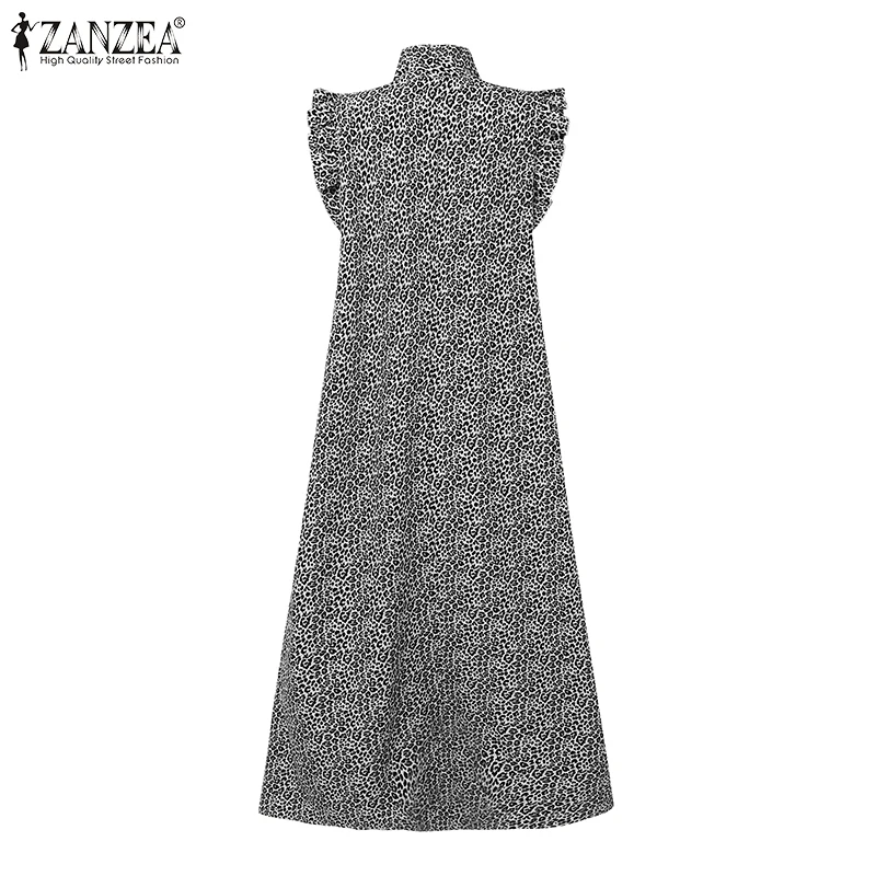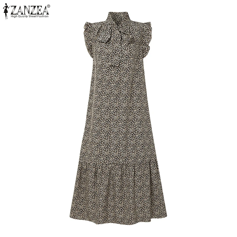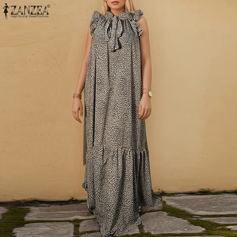 Women Printed Dress Long Party Sleeveless Tank Lace-Up V Neck
