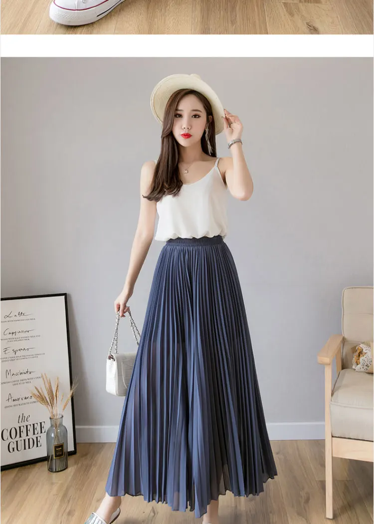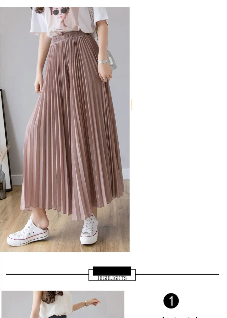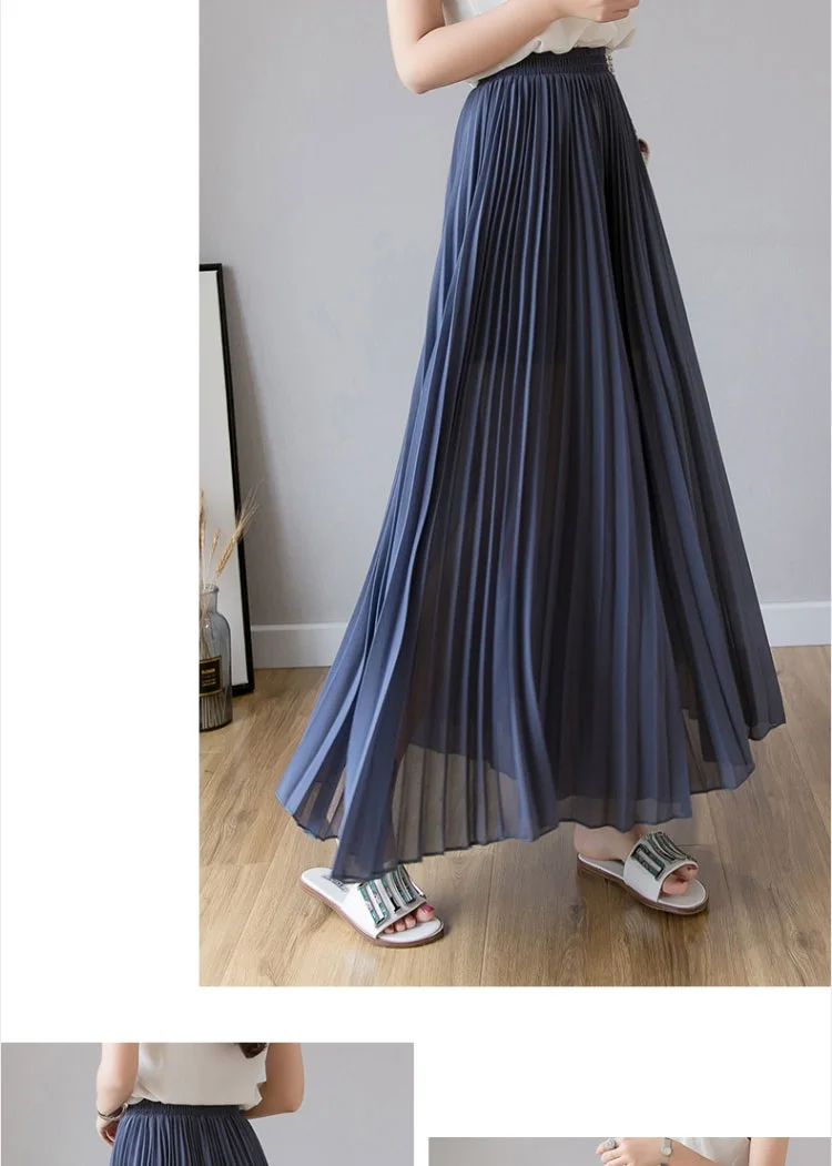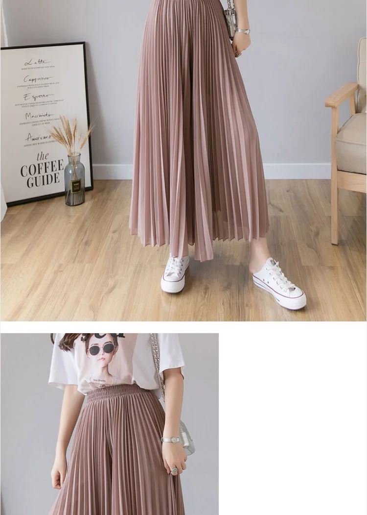 Thin Chiffon Pleated High waist Elastic Wide-leg pants