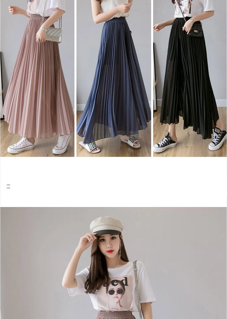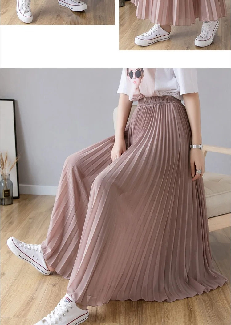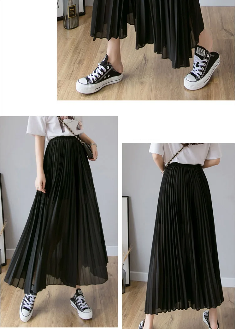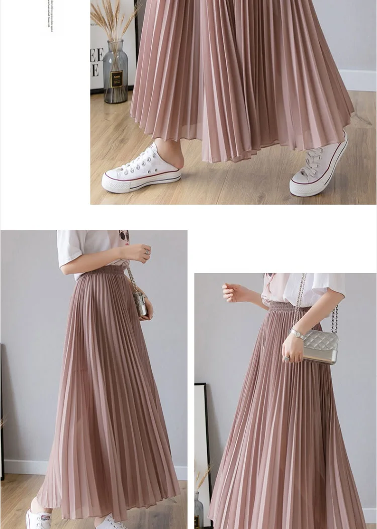 Thin Chiffon Pleated High waist Elastic Wide-leg pants