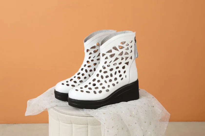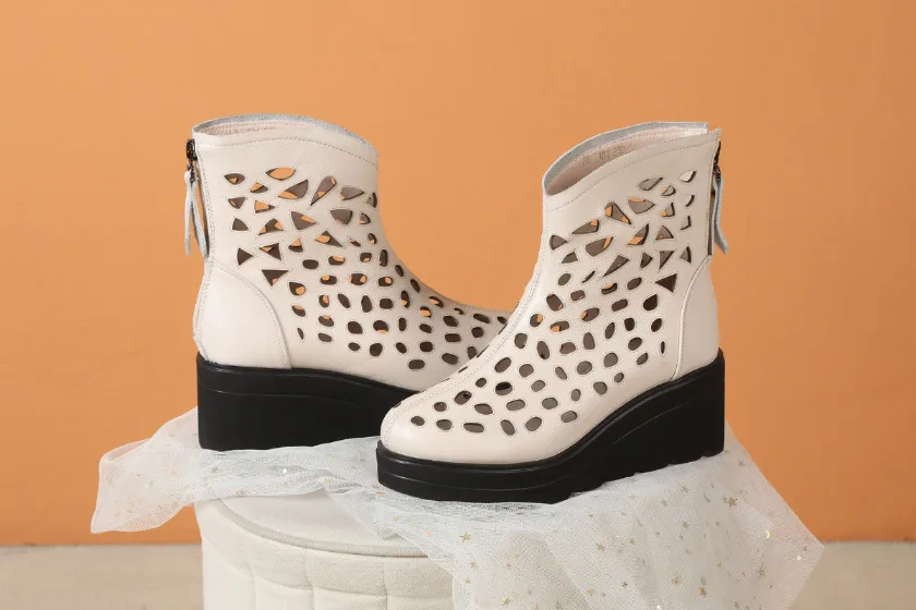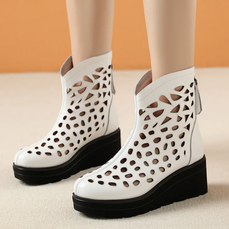 Cowhide Hole Boots, Summer Boots, Genuine Leather Women's Boots