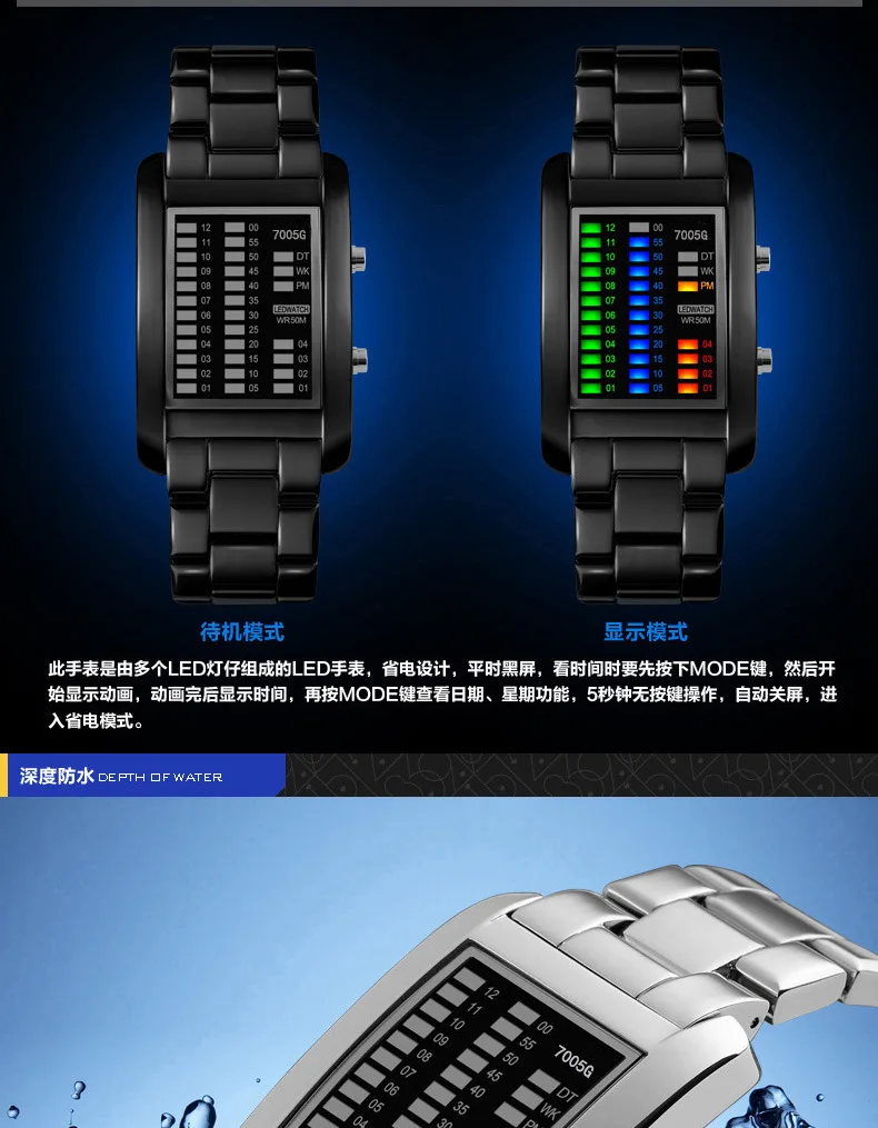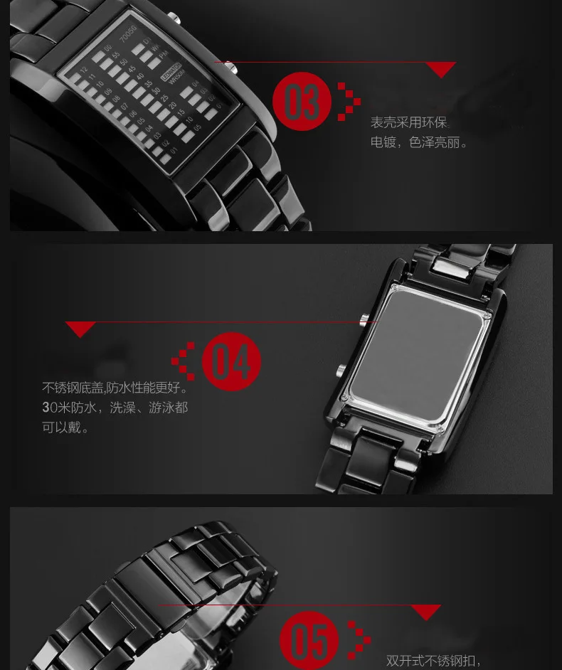 Binary Led Watches Men Multifunctional Electronic Wristwatches