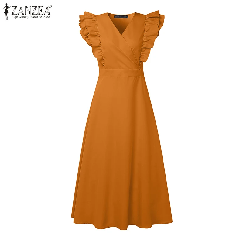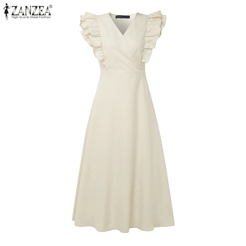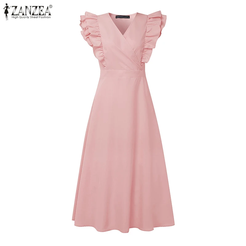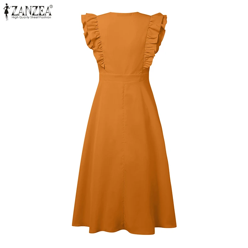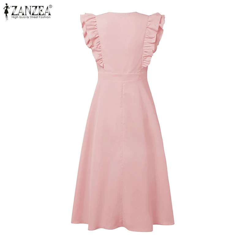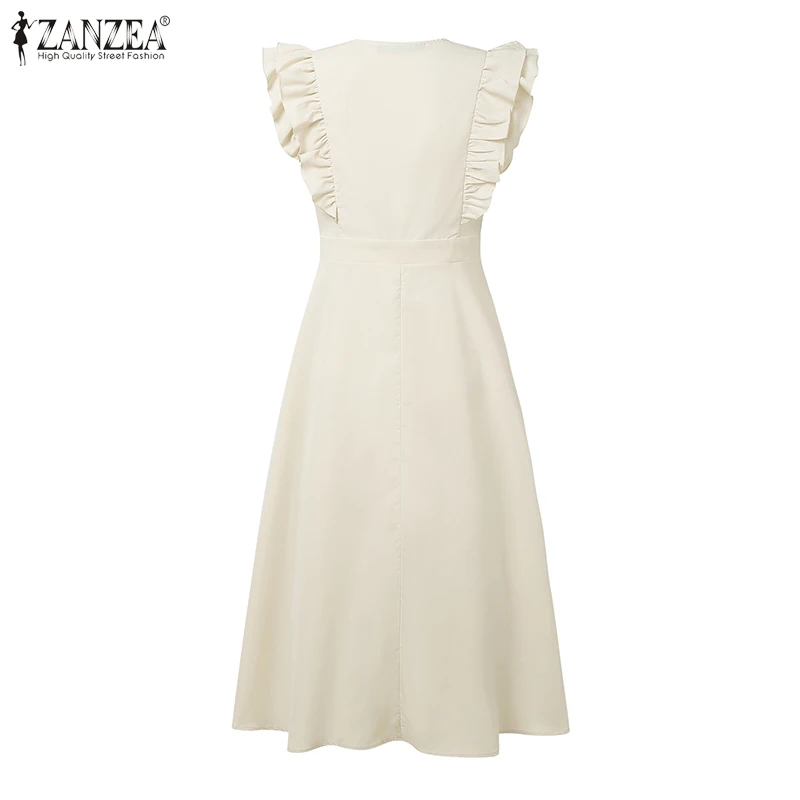 Women's Vintage French Dress Ruffled Solid Short Sleeve V Neck