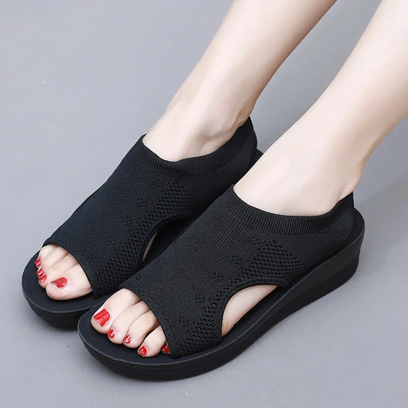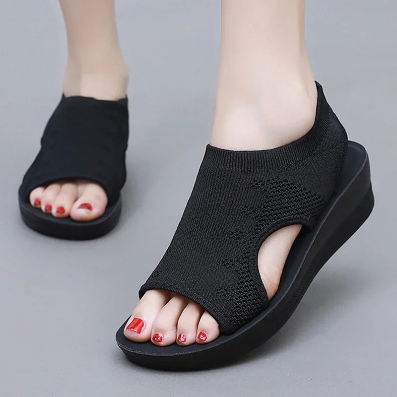 Women's Wedges Sandals Slip On Open Toe Walking Shoes Slipper