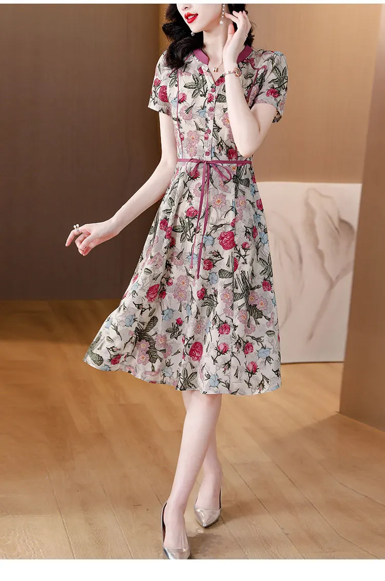 Silk Luxury Elegant Casual Midi Dress Women Floral Evening Dress