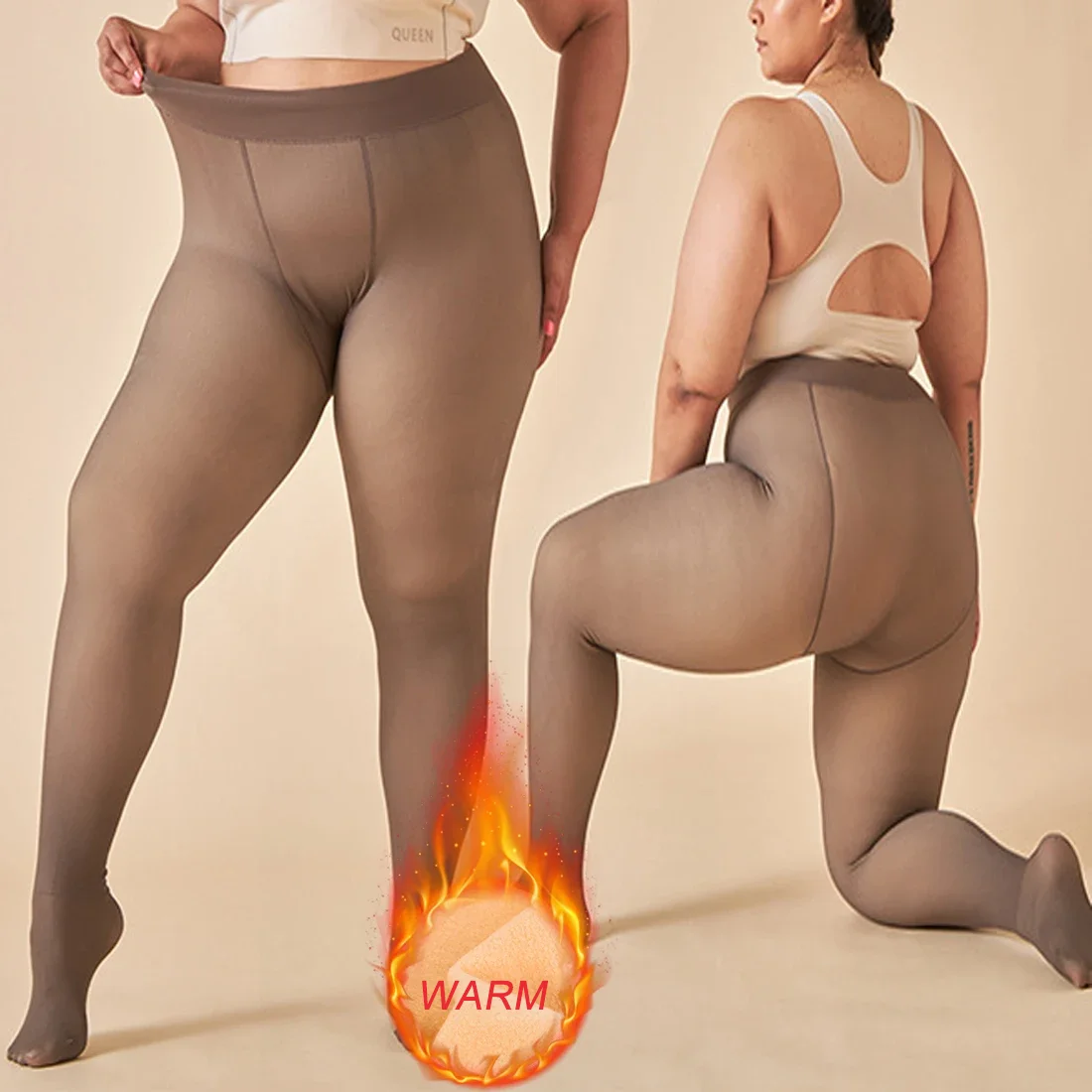 Elastic High Waisted Fleece Insulated Leggings Large Size