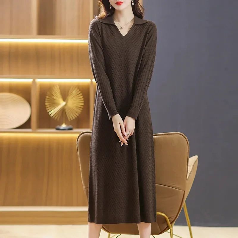 Woolen Dress Women's Long Pullover Loose Over Knee Knitwear Bottom