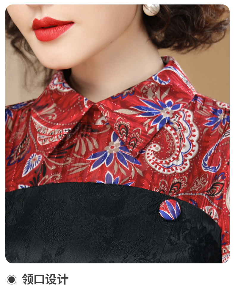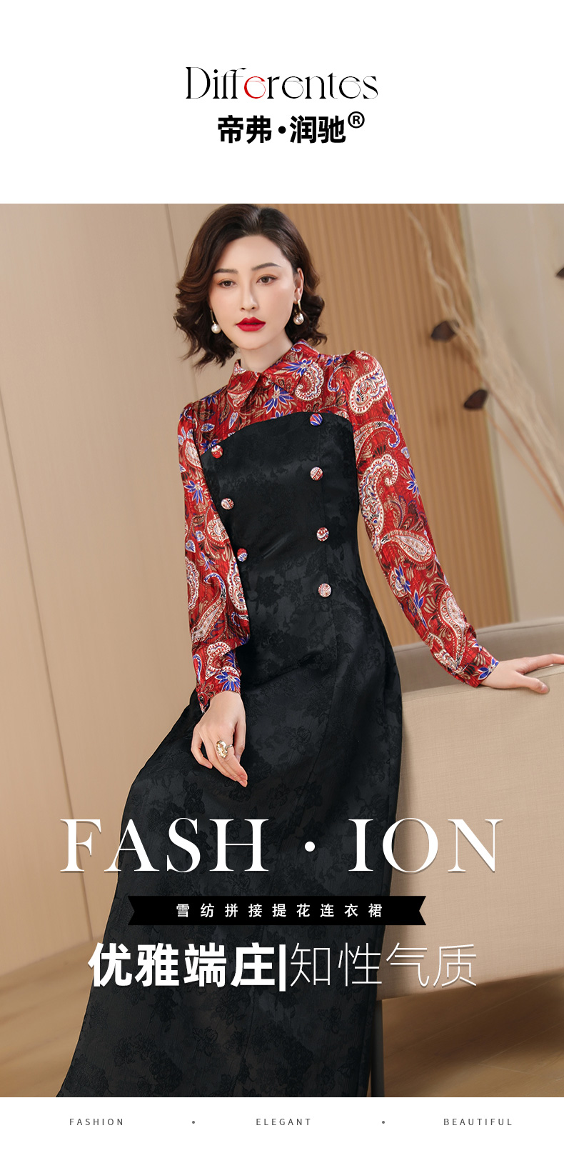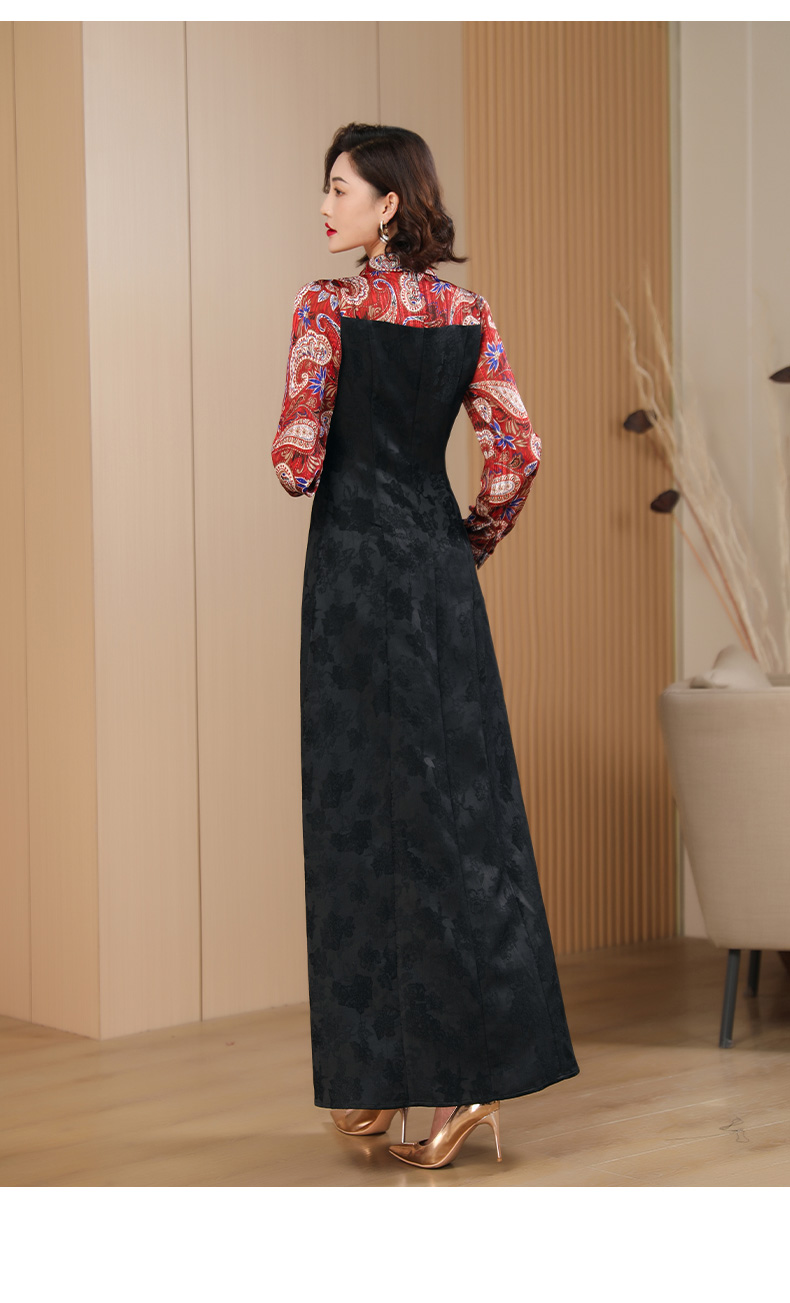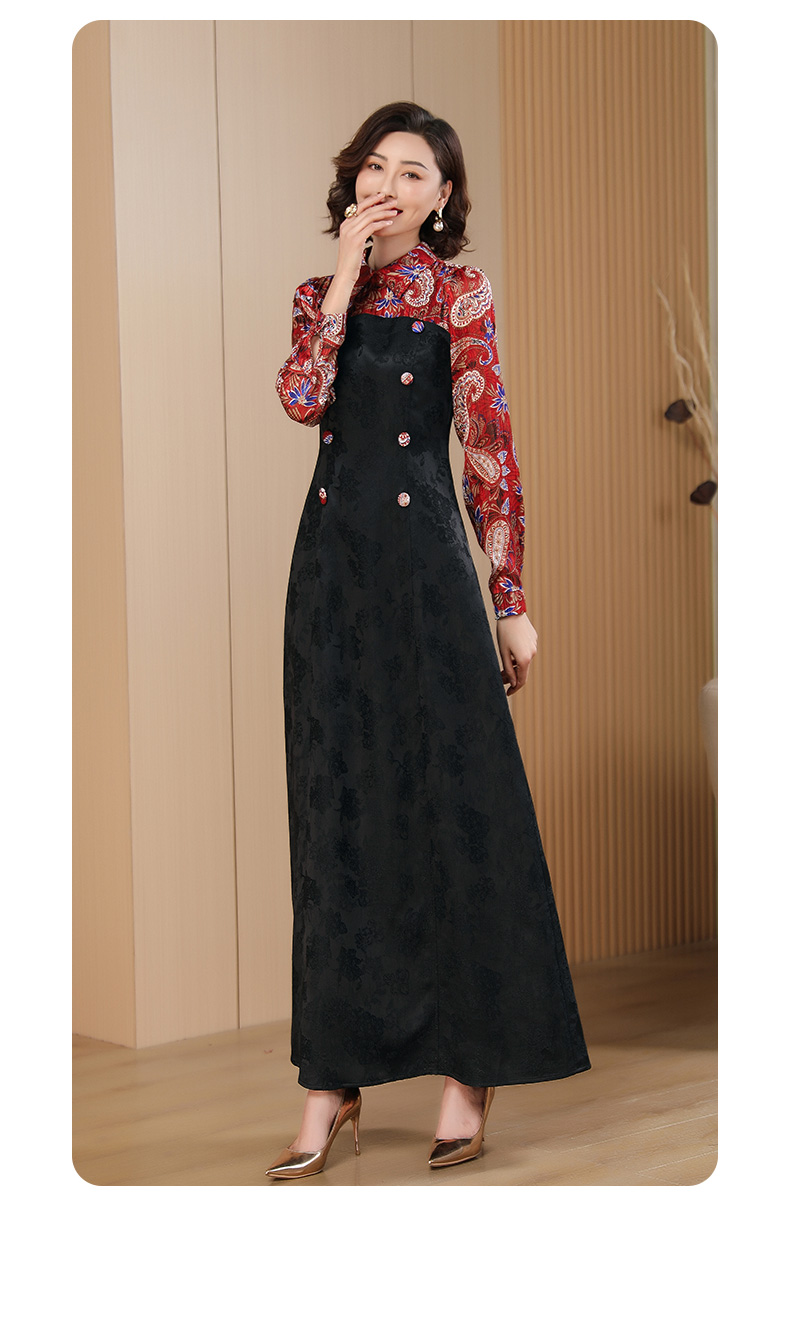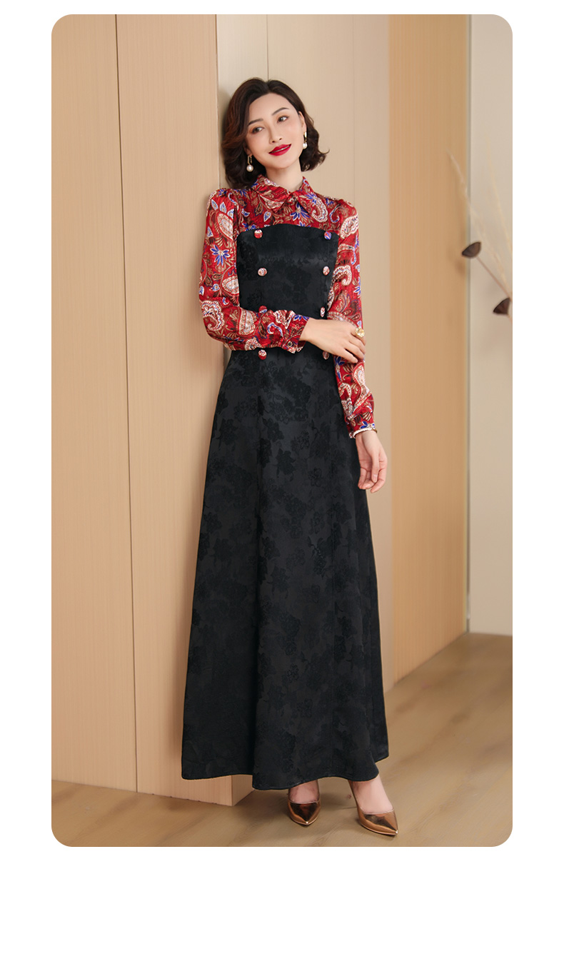 Jacquard Long Dress Patchwork Design Long Sleeve Slim Fit Vintage