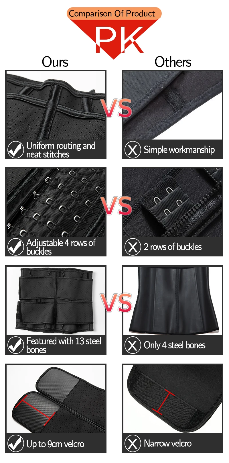- 13 spiral steel bones built into the waist do help to keep your back in the correct position and correct the wrong posture.