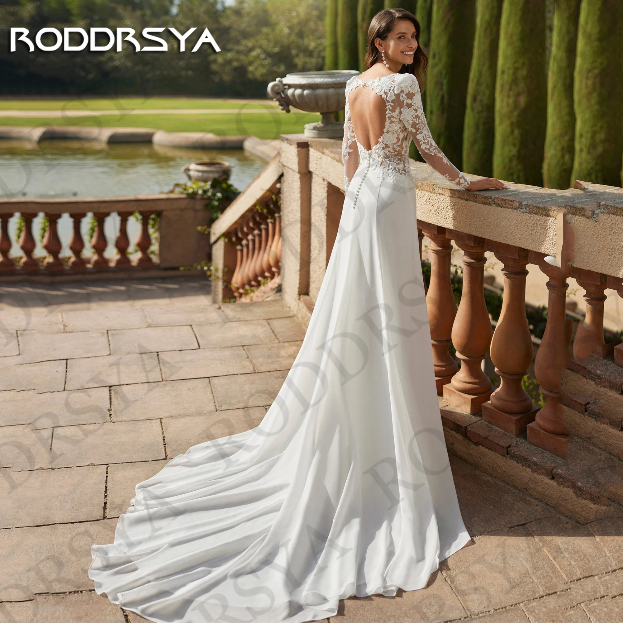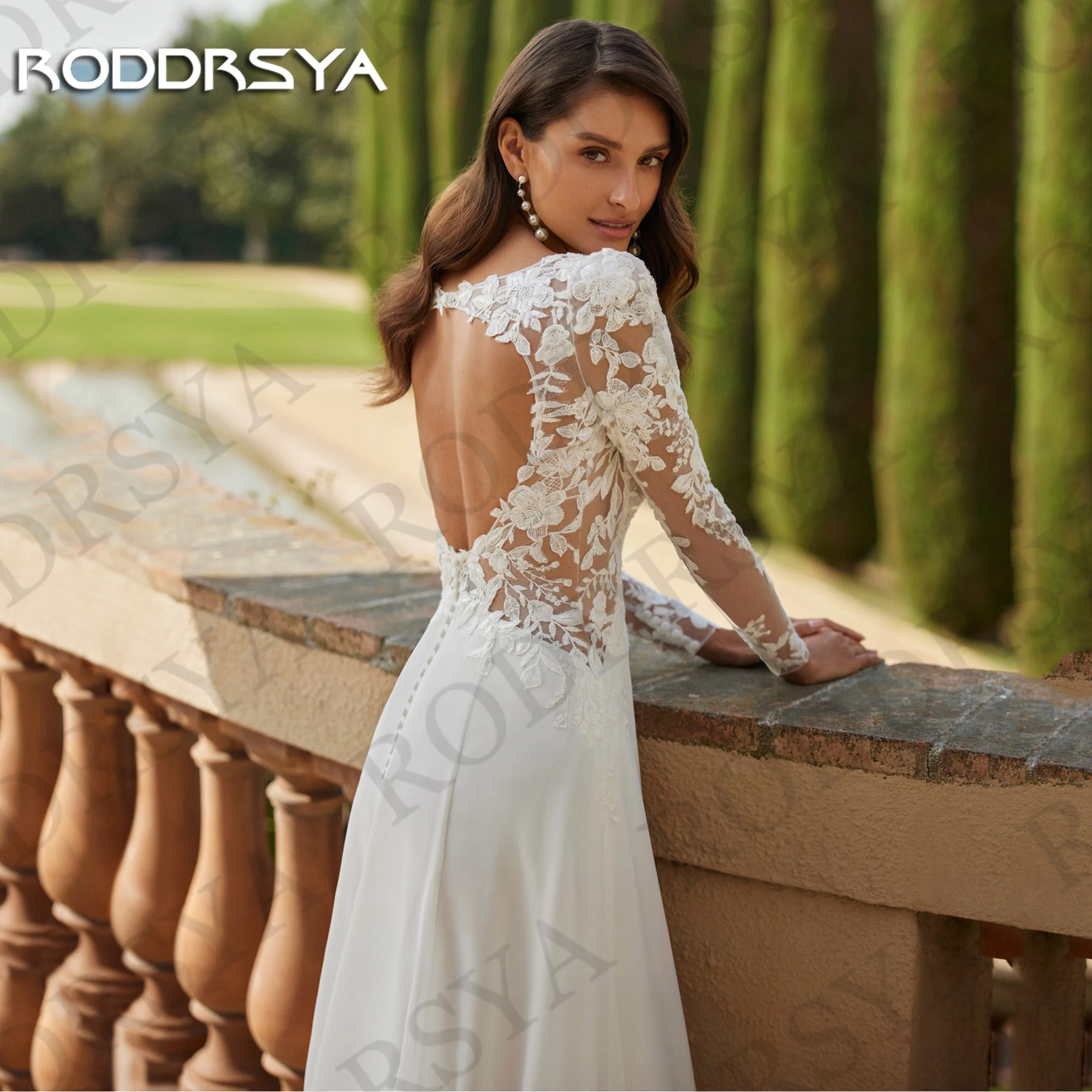 Backless Wedding Dress for Bride Lace A Line Chiffon Customized