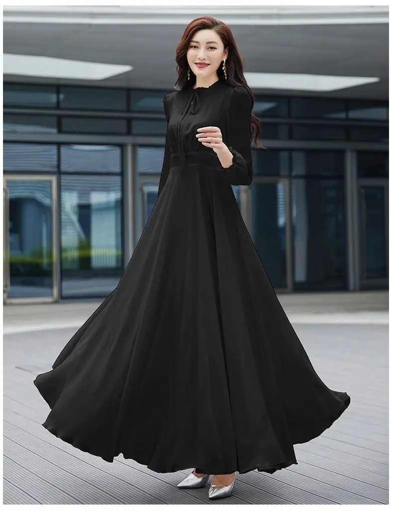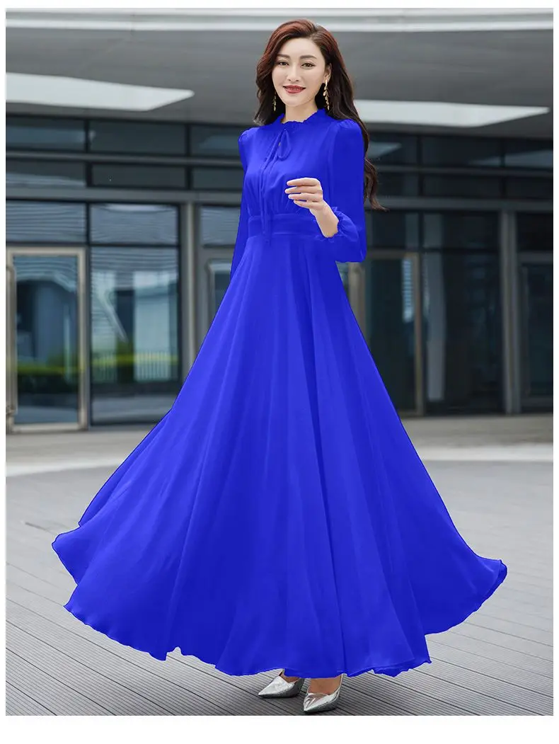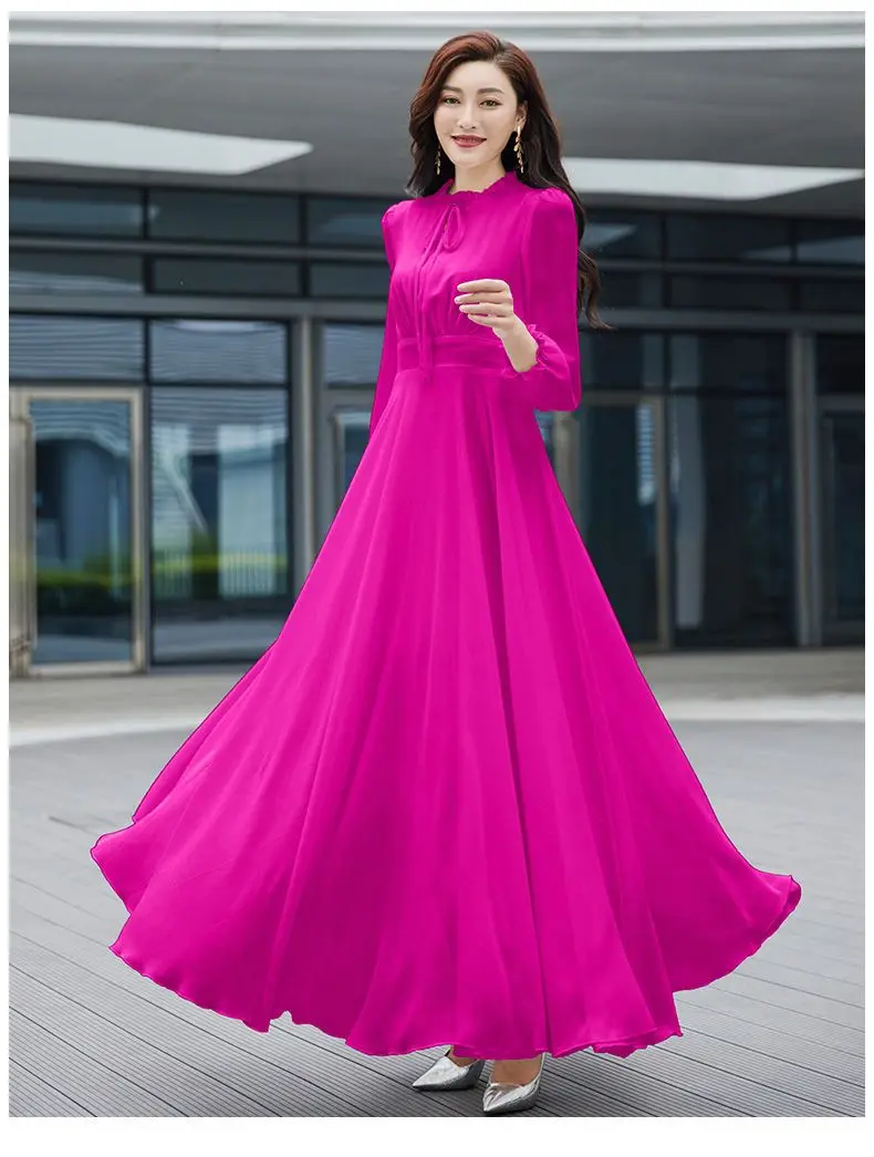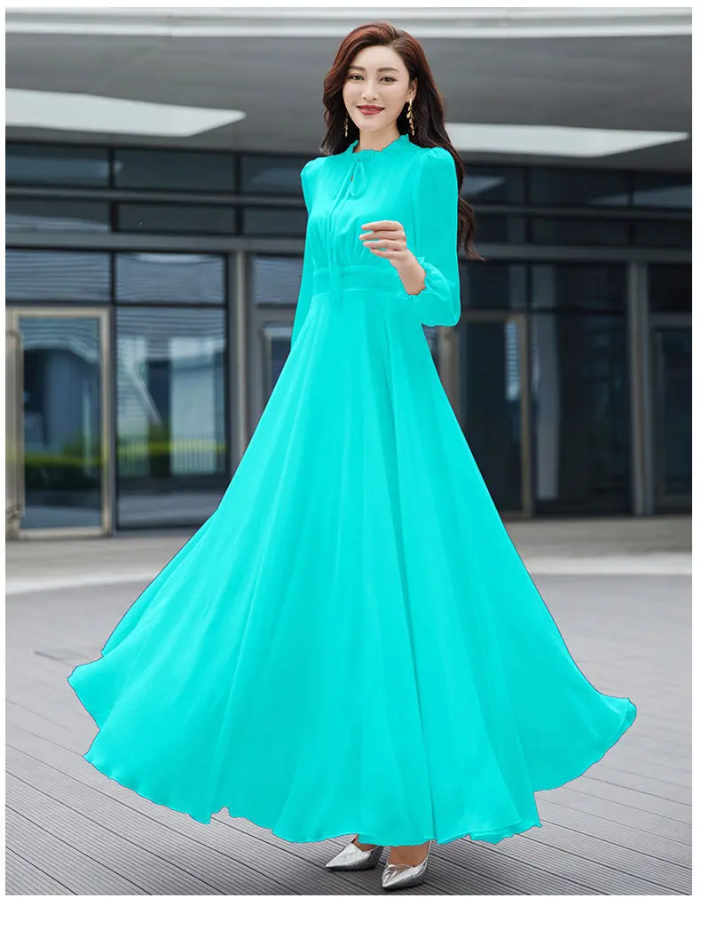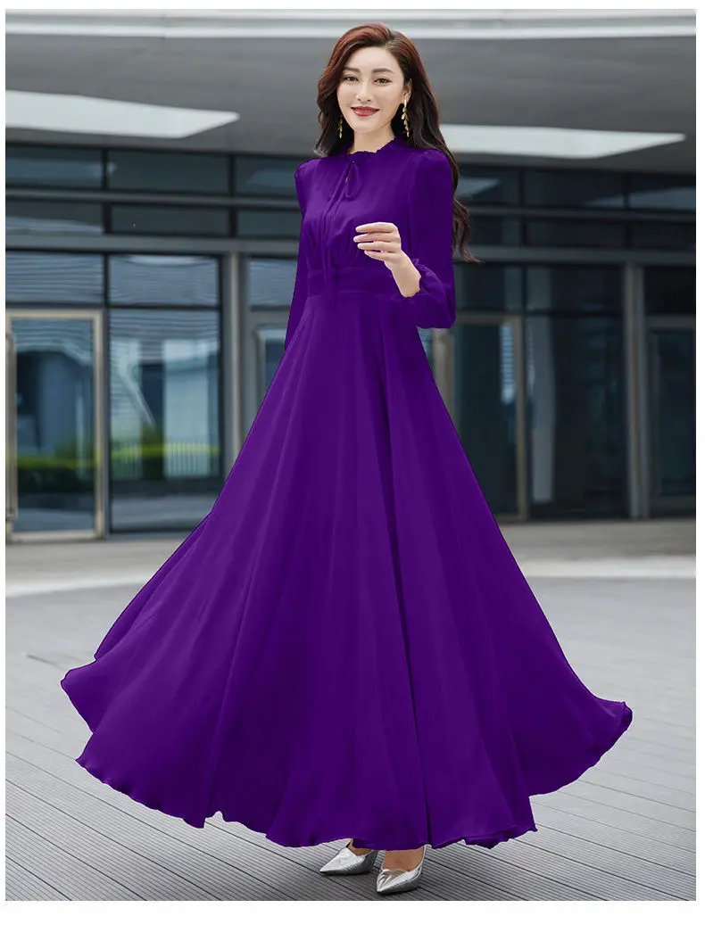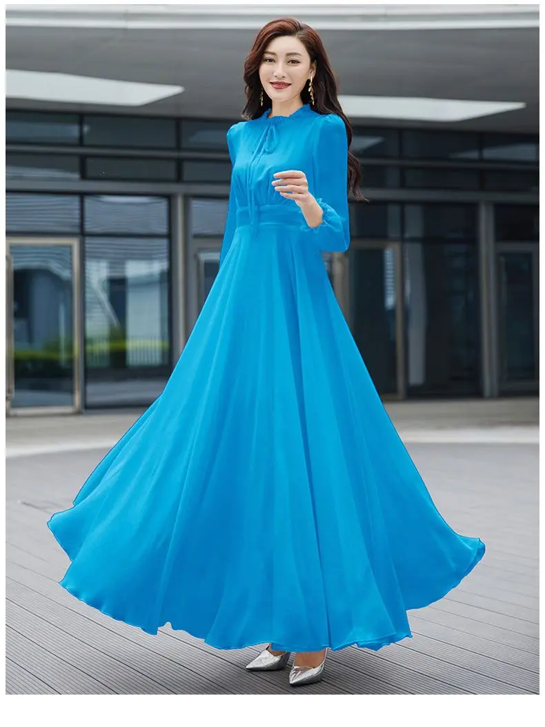 Bohemian Long Chiffon Dresses Elegant Ladies Long Sleeves Slim