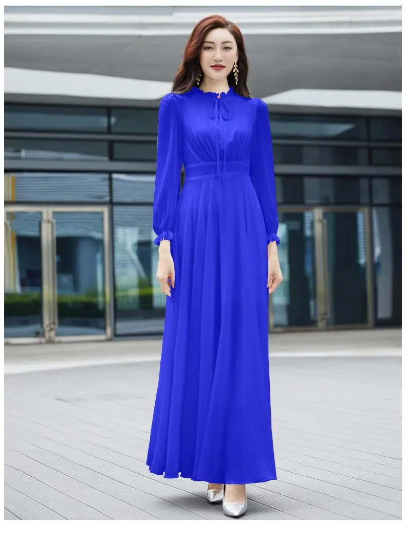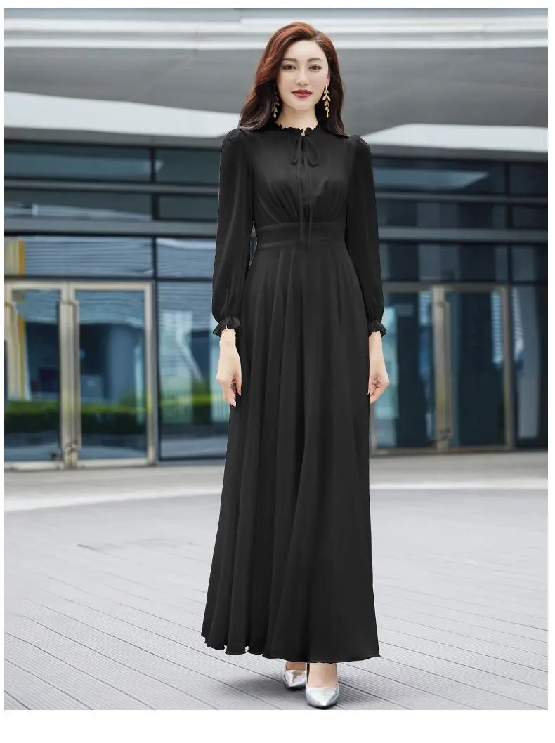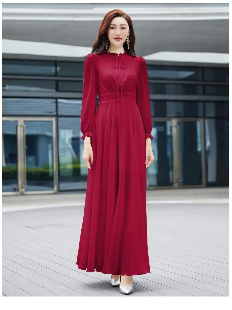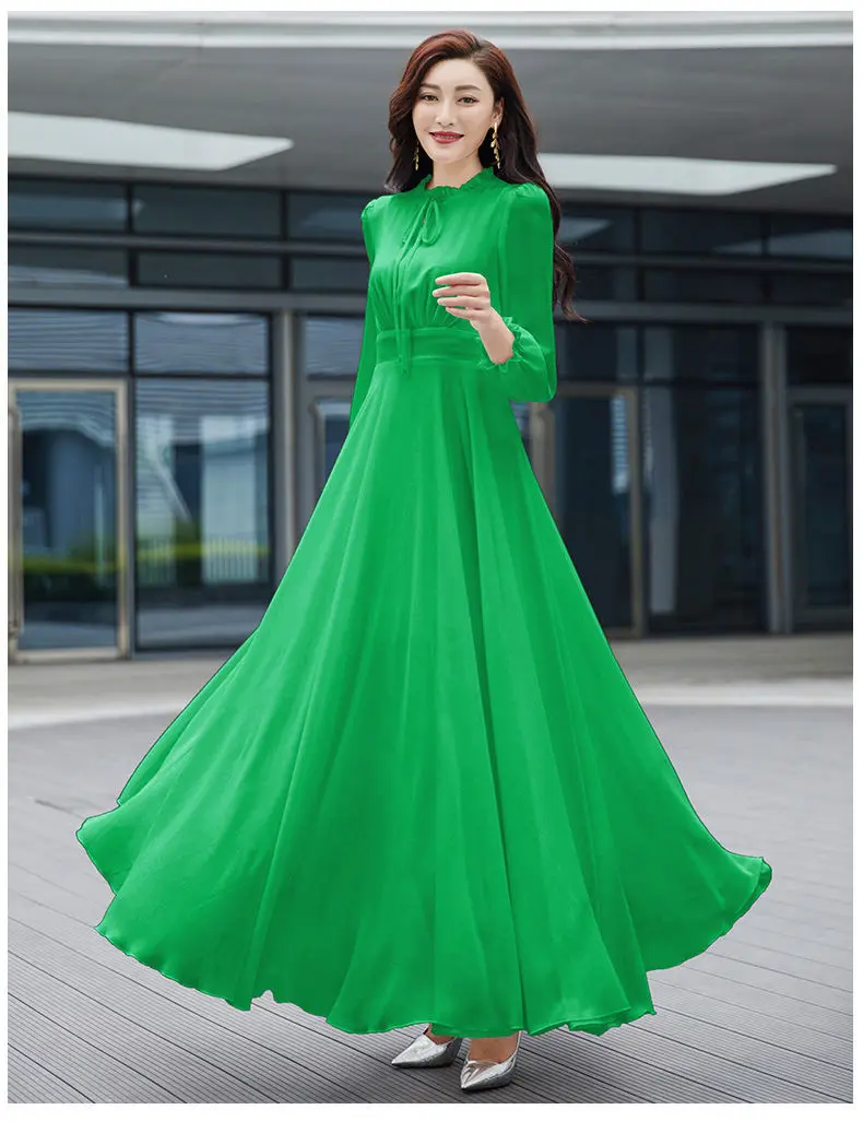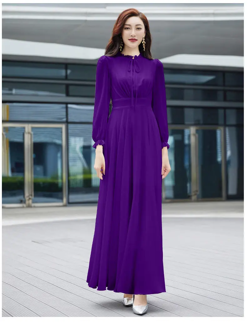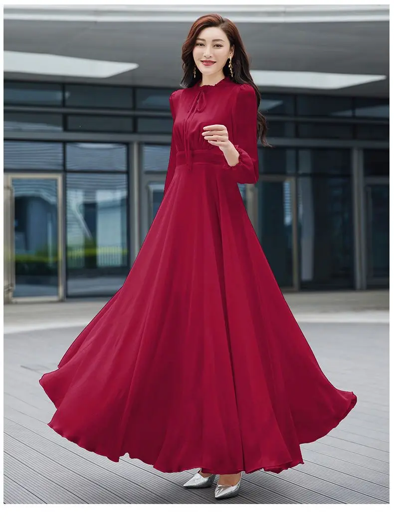 Bohemian Long Chiffon Dresses Elegant Ladies Long Sleeves Slim