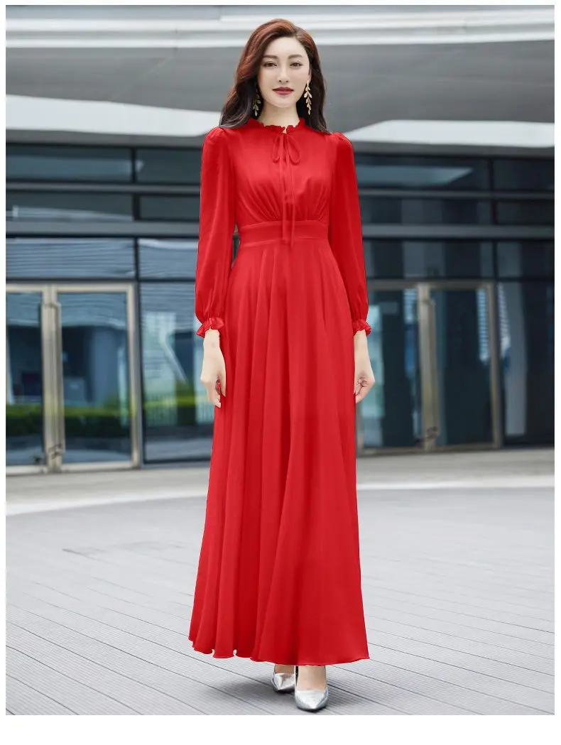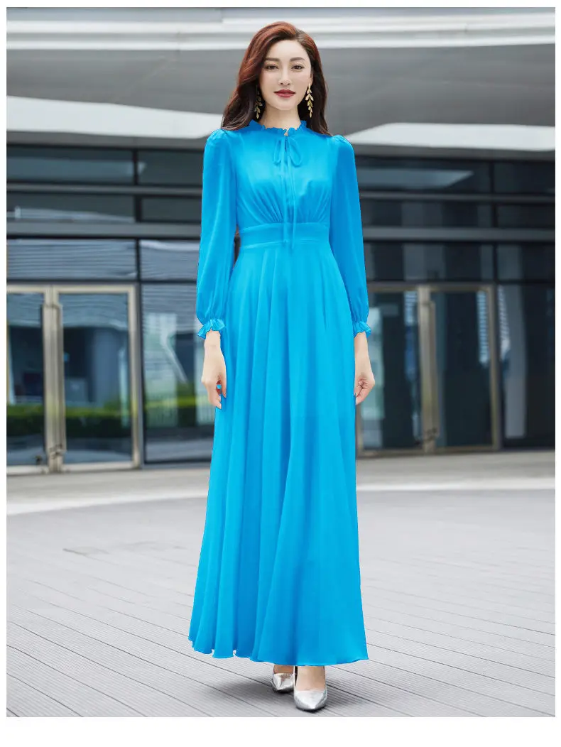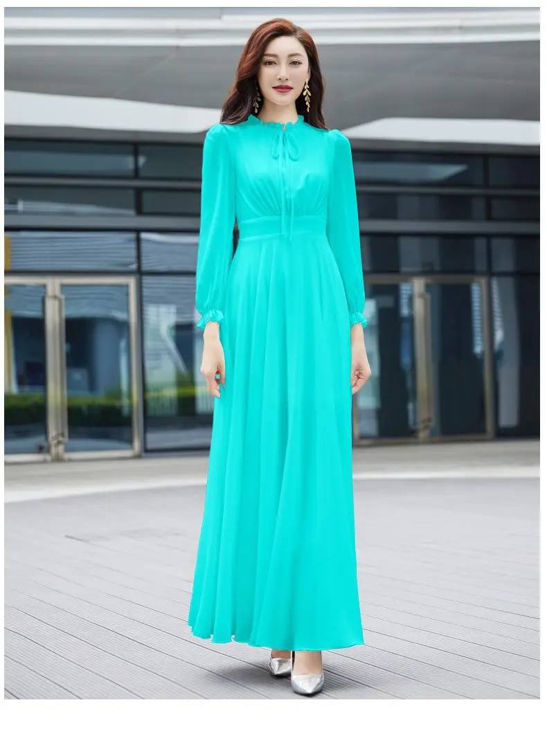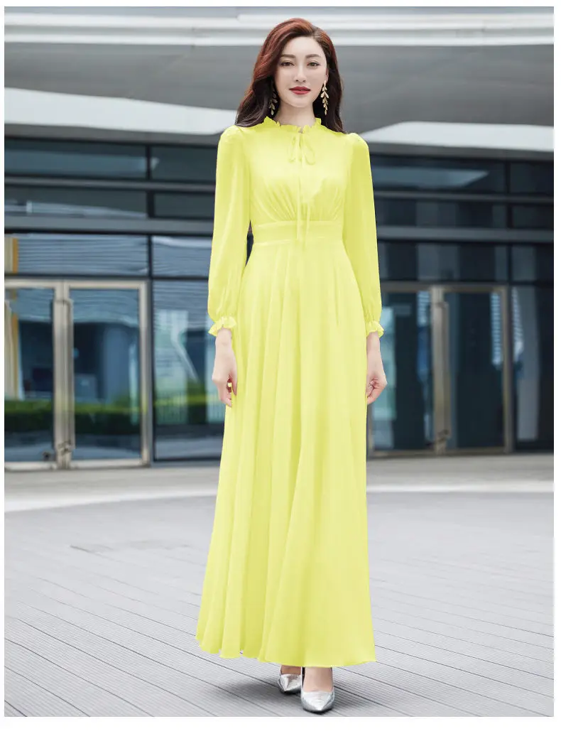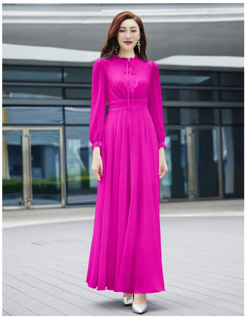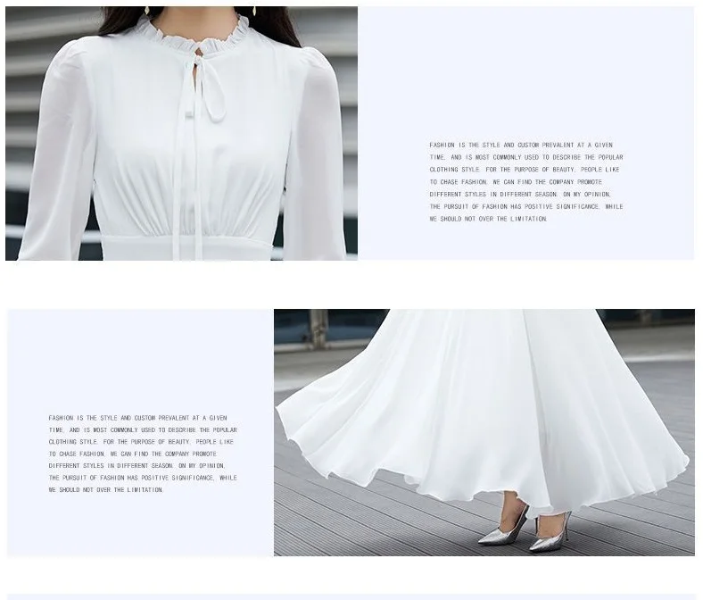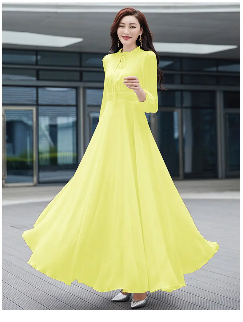 Bohemian Long Chiffon Dresses Elegant Ladies Long Sleeves Slim