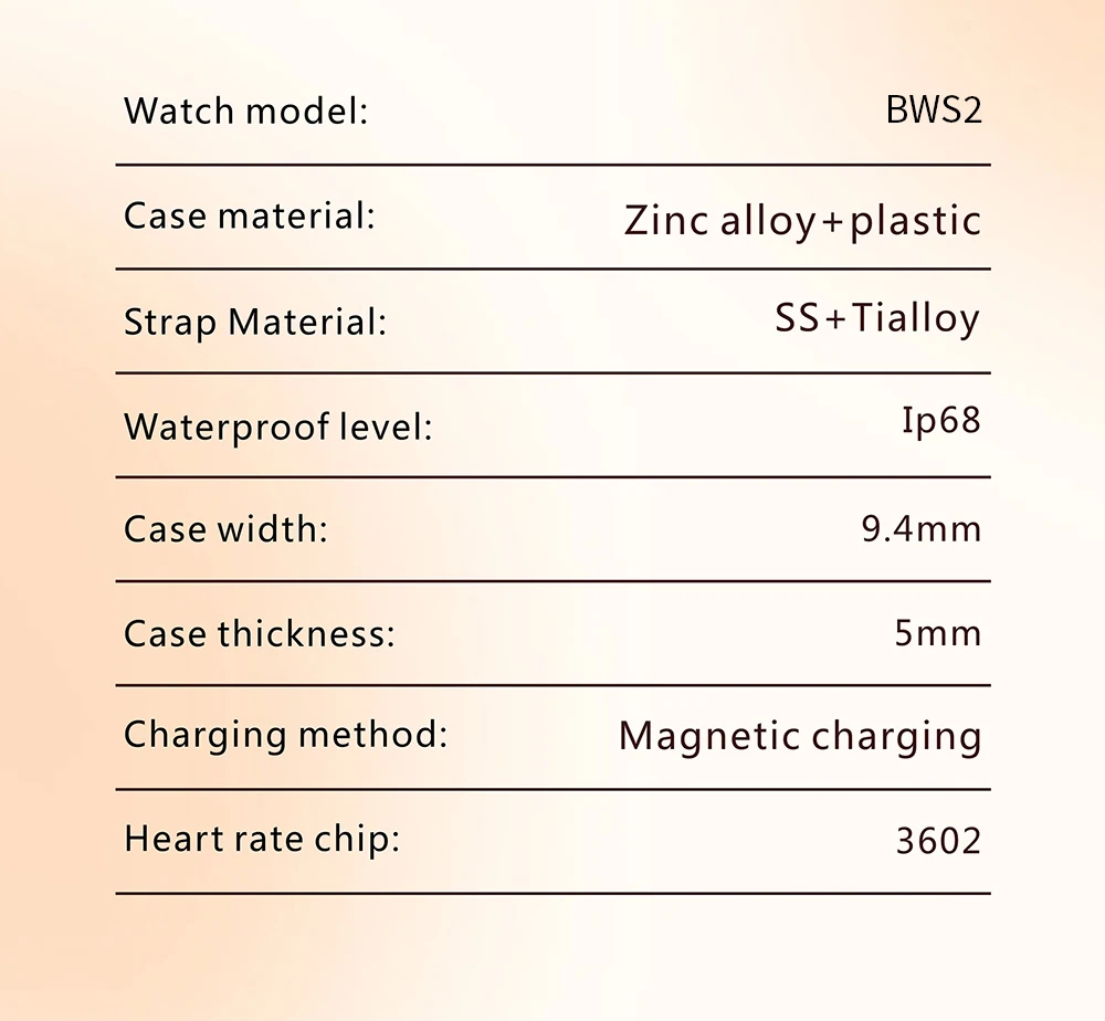 - Function: Passometer, fitness tracker, sleep tracker, Alarm Clock, Calorie Counter, Speed Measurement, Heart Rate Tracker