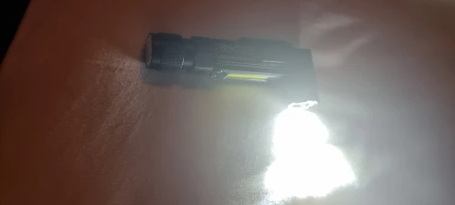 Wow! Very bright and handy with all of it’s accessories. Magnet is extremely strong. Clicking Swivel on flash light makes clipping on any item very convenient. Clip is metal and strong. Flashlight body feels metallic and sturdy. I’ve dropped numerous times already and it feels extremely solid. I love it. Great buy. Seller highly recommended! Also has red or white strobe effects, as well as adjustable beam and brightness.